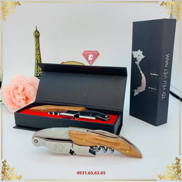 Khui Rượu Vang Cán Sồi Hộp Giấy Nhung Tôi Yêu Việt Nam