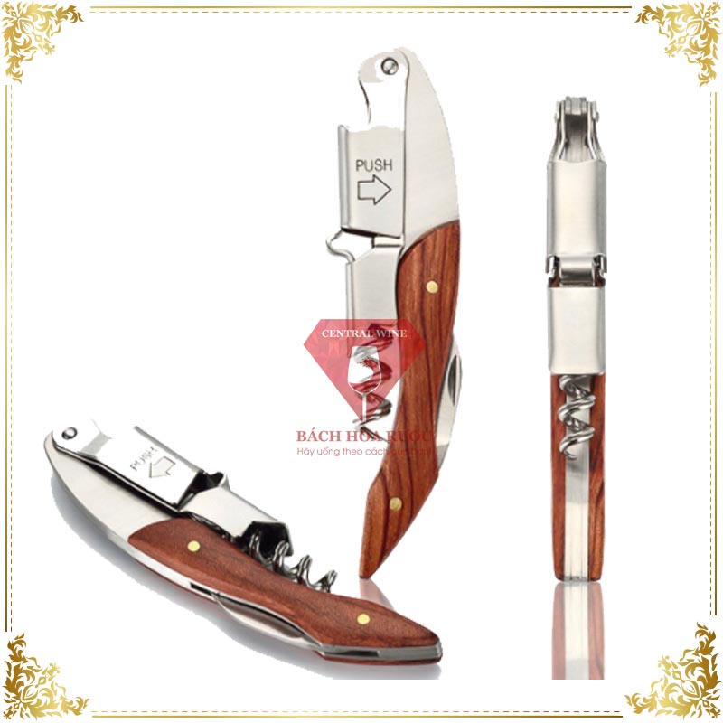 -  Dụng cụ đa năng 3 trong 1 bền màu chất lượng cao, kiểu dáng thanh lịch phù hợp với mọi nút chai rượu vang, dụng cụ mở nút chai kèm lưỡi cắt bằng thép không gỉ 420 bền bỉ thời trang có tay cầm làm bằng gỗ hồng thoải mái.