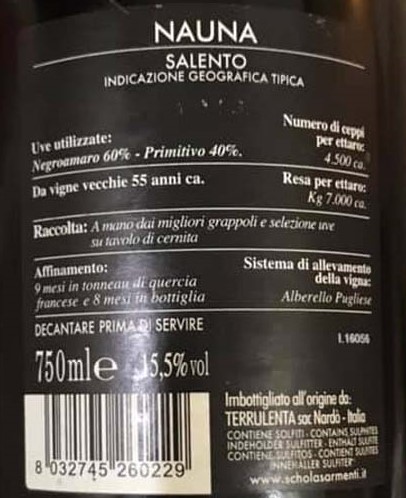 Rượu vang Ý Nauna Rosso Salento là dòng vang cao cấp của Ý. Một sản phẩm đạt đến độ hoàn mỹ và được sản xuất từ nơi được mệnh danh là chén thánh vùng Salento. Đây cũng chính là đứa con tinh thần của Scholar Sarmenti.